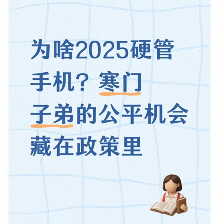说到底,国家严管手机,从来不是要和手机“过不去”,而是要和“手机加剧教育不公”的现象“过不去”。对那些没条件享受优质教育资源、没人时刻陪伴的寒门孩子来说,这样的管控是在帮他们守住最宝贵的学习时间,让他们有机会通过知识改变命运。手机本身没有对错,错的是失控的使用和失衡的引导,而政策就是要把这种失衡拉回正轨。